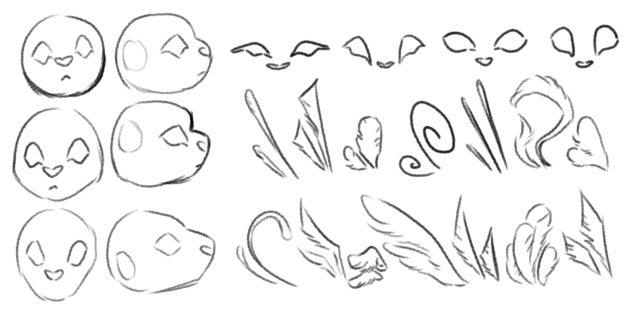 The Keizwen have a kitsune-inspired face shape, with a stiff, quill-like mane. Their wings have a membrane instead of being feathered itself, but the backside of the wings do have tiny 'hairs' down it that allow for things to slide off it one way, but get stuck on the other. On the underside is a much looser, softer version of this that is meant as insulation.